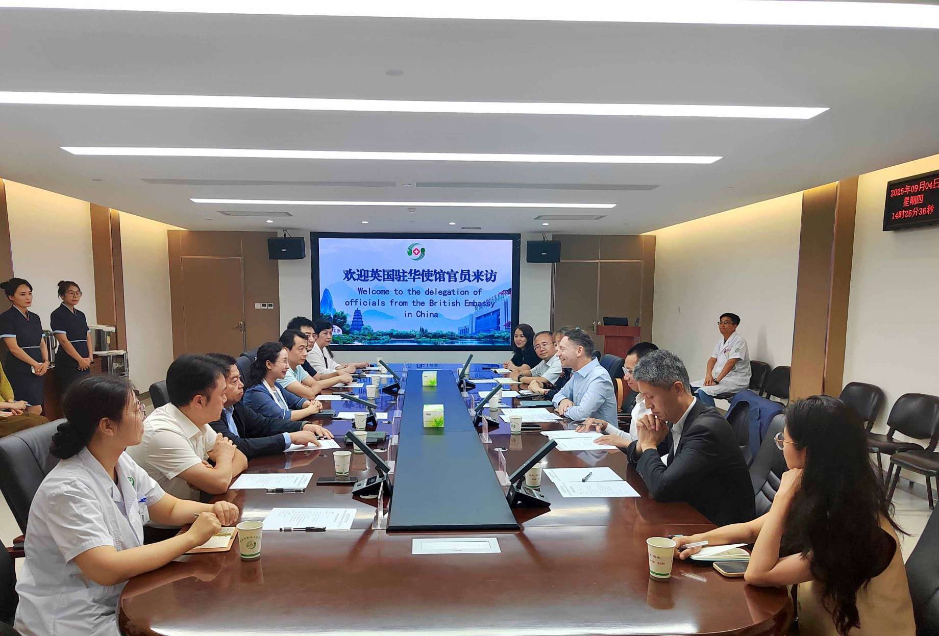 金风送爽,硕果盈枝。2025年9月4日下午,英国驻华使馆北方地区合作处主管毕思德一行3人,来到陕西省精神卫生中心.西安市精神卫生中心开展交流访问。陕西省外事办、陕西省卫生健康委、西安市卫生健康委相关人员,陕西省精神卫生中心.西安市精神卫生中心党委书记沈滨、院长钱露等院领导班子成员及职能科室负责人陪同参观并参加座谈。