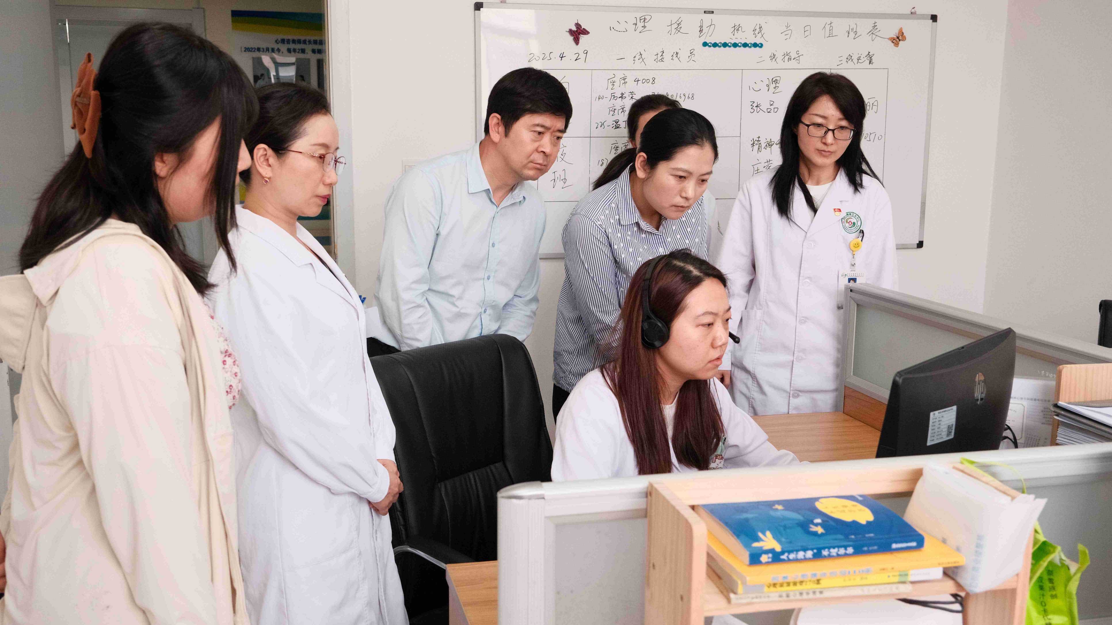 随着座谈会圆满落下帷幕,在钱露院长的引导下,与会人员走进“12356” 心理援助热线接听场所。实地参观过程中,大家近距离感受热线的工作环境、操作流程与服务细节,进一步加深了对心理援助工作实际开展情况的了解。